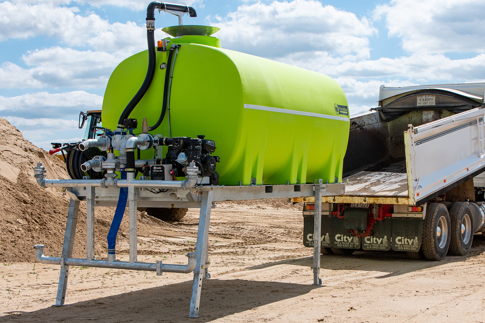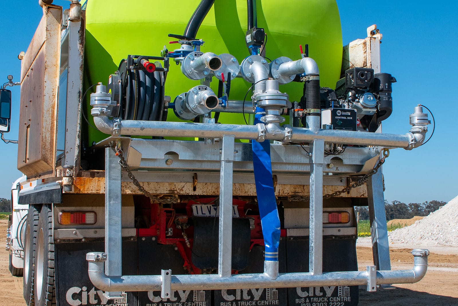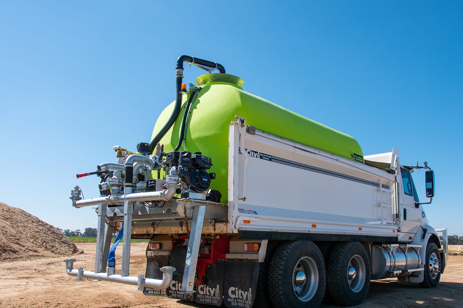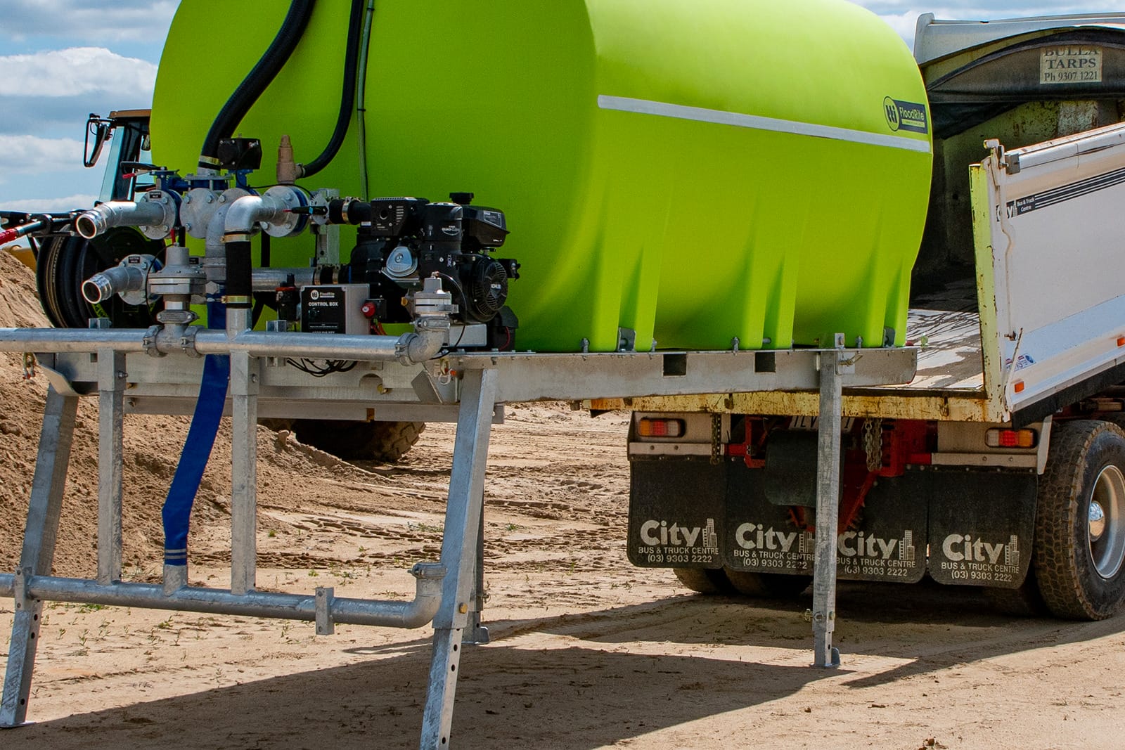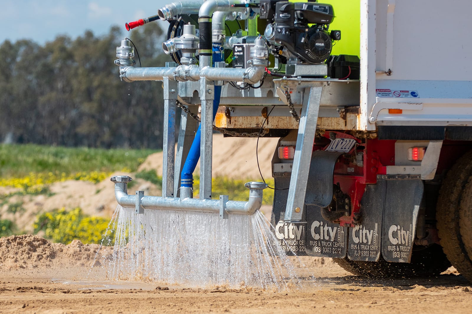 - Carries more volume than smaller portable water trucks, without the size or weight of a full tanker, ideal for dust suppression, washdown and civil works support