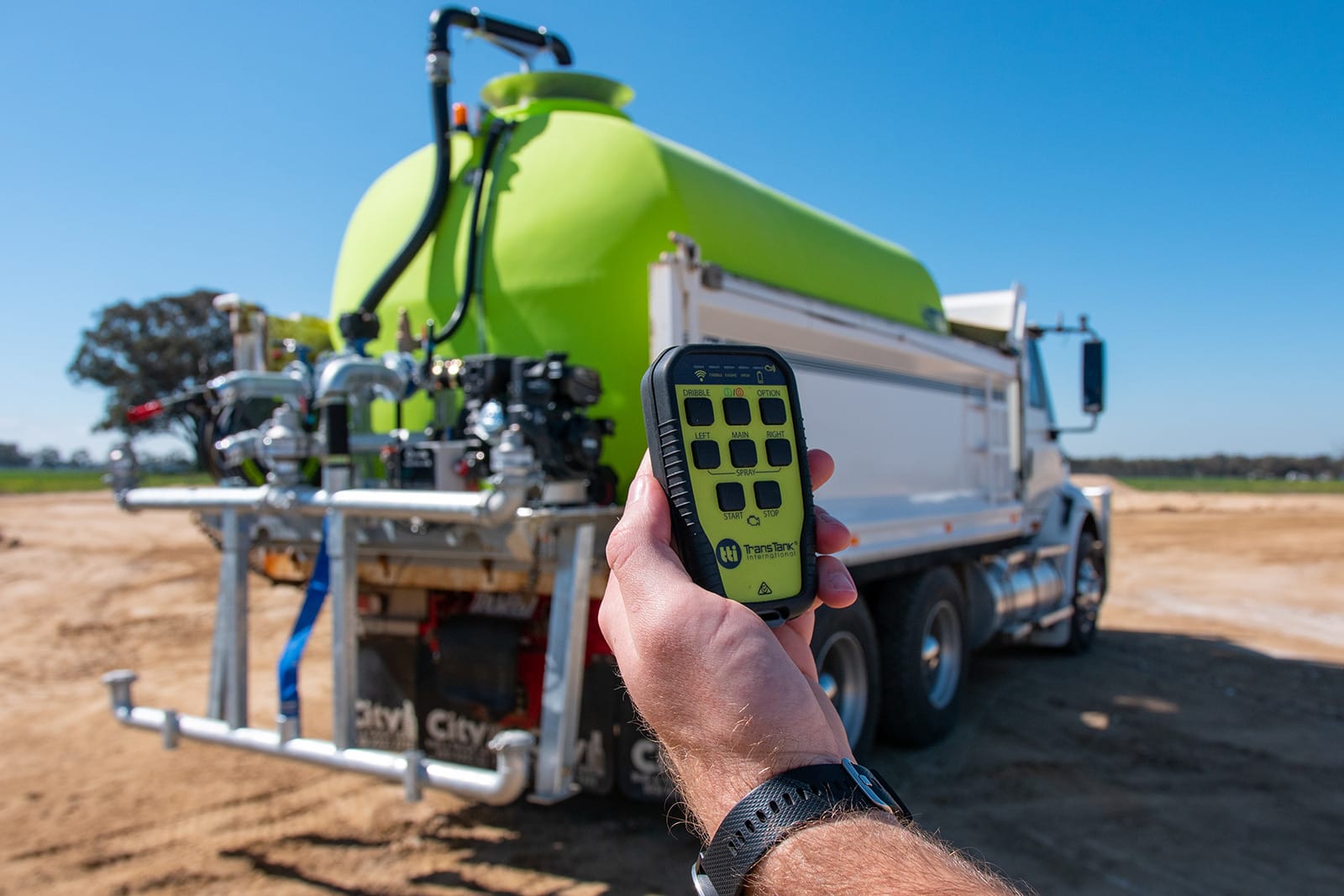 - Handheld Wireless Remote Controlled. Easily switch trucks, Turn motor on/off, spray bar & dribble bar on/off.
