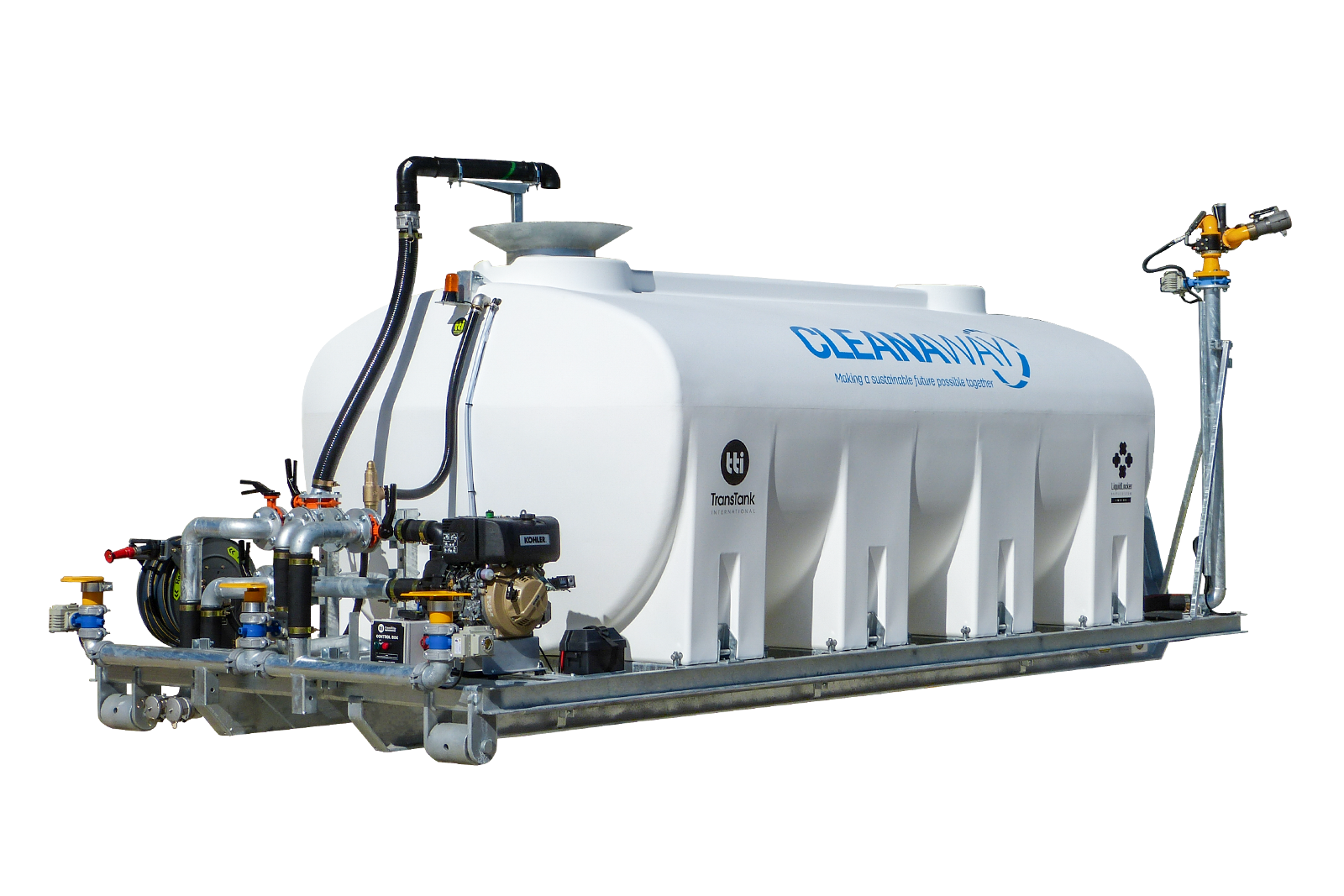 - Tank fitted with LiquidLocker Baffle System for safety and stability, eliminates surge