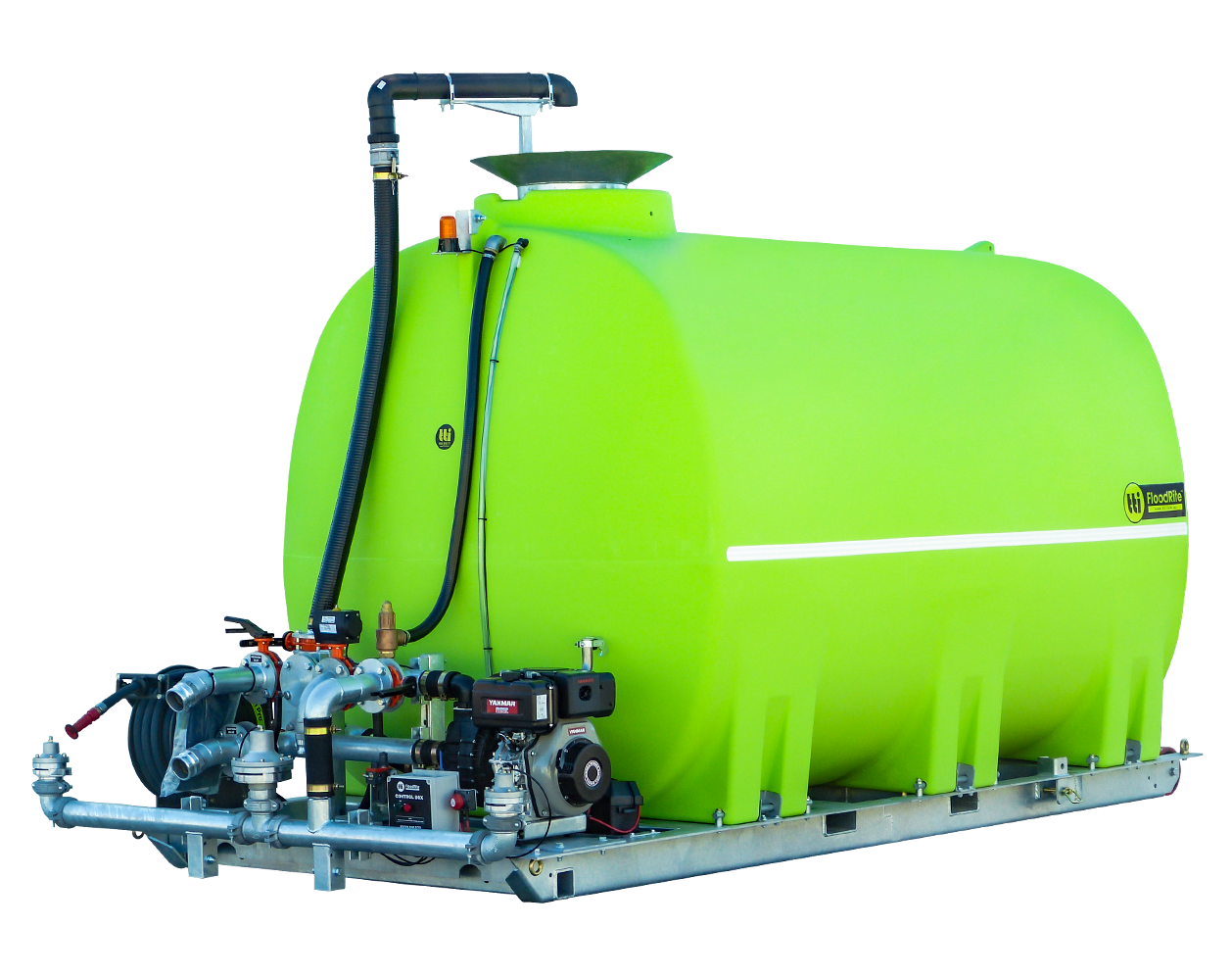 - Fully welded & hot dipped galvanised pipework. Easily accessible hydrant port etc